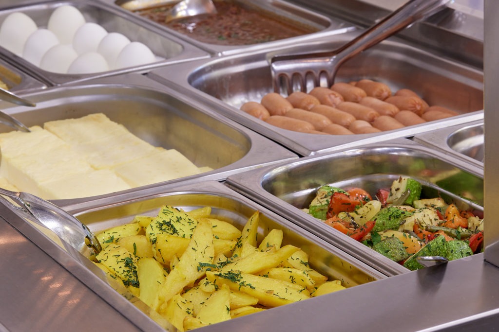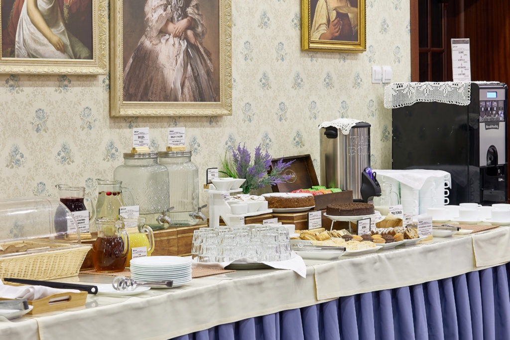 Завтрак проходит в банкетном зале «Империя» с 7:00 до 10:00 по будням и с 8:00 до 11:00 в выходные.