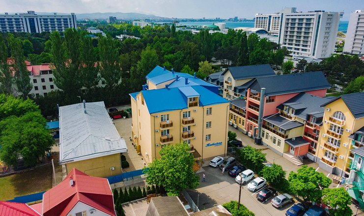 Гостевой дом расположен на ухоженной территории площадью 1300 кв.м. и состоит из двух корпусов - 2 и 4 этажа. Гости могут выбрать из стандартных однокомнатных и двухкомнатных номеров, оборудованных санузлом, сплит-системой и балконом. Номера оборудованы бытовой техникой - холодильник, телевизор, фен, электрочайник.